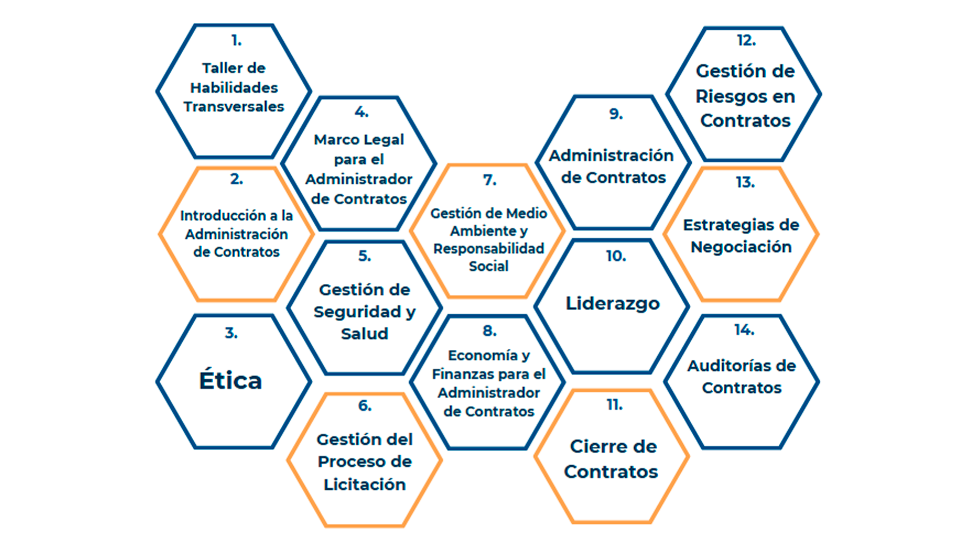 «El Diplomado en Administración de Contratos busca proporcionar los conocimientos y competencias necesarias para lograr agregar valor, en las variadas dimensiones de la gestión, en las que incluyen: seguridad, medio ambiente, marco legal y del negocio; las que se deben aplicar en la perspectiva tanto del proceso de contratación, como el ciclo de vida de un contrato, desde el inicio de la prestación de servicio hasta el cierre y desmovilización.»